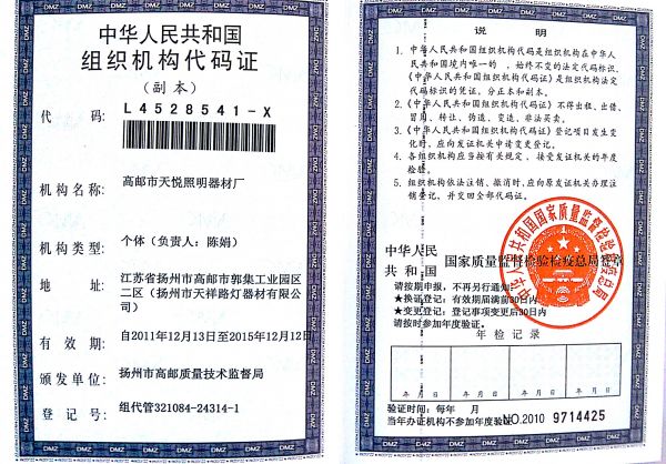 产品名称: 组织机构代码证 |