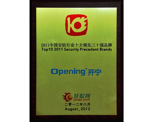 资质名称: 中国安防十大领先30强品牌 |