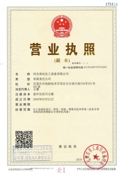 | 销售单位: 河北诺达化工设备有限公司 |