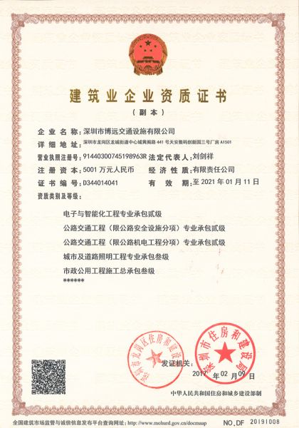 | 资质单位: 深圳市博远交通设施有限公司 |
